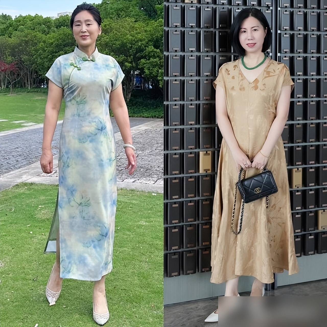 新中式最近火得有道理——小立领把颈纹藏起来,盘扣一路向下,A字摆甩得开又不蓬,搭一串小米珠耳环,"有文化"写在脸上。